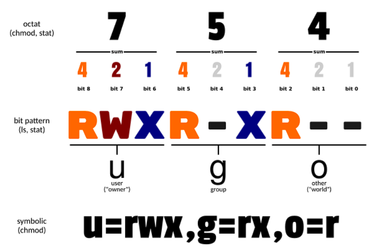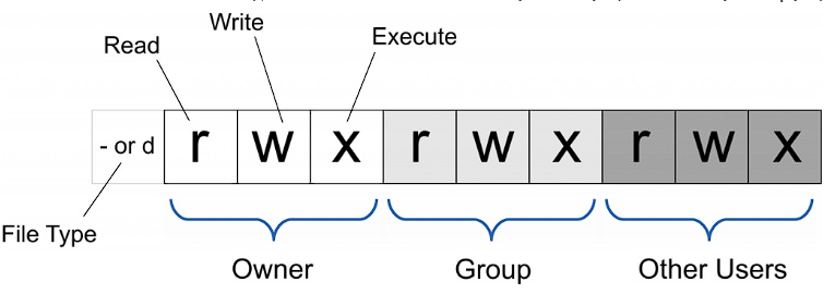 Linux/Unix 的文件调用权限分为三级 : 文件所有者(Owner)、用户组(Group)、其它用户(Other Users)。