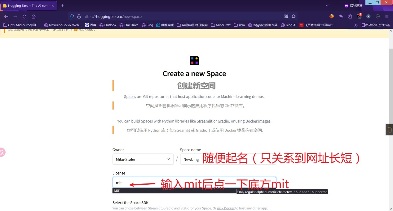 - Private——不在你组织或未登录的人不能能访问你的Space(私有)。