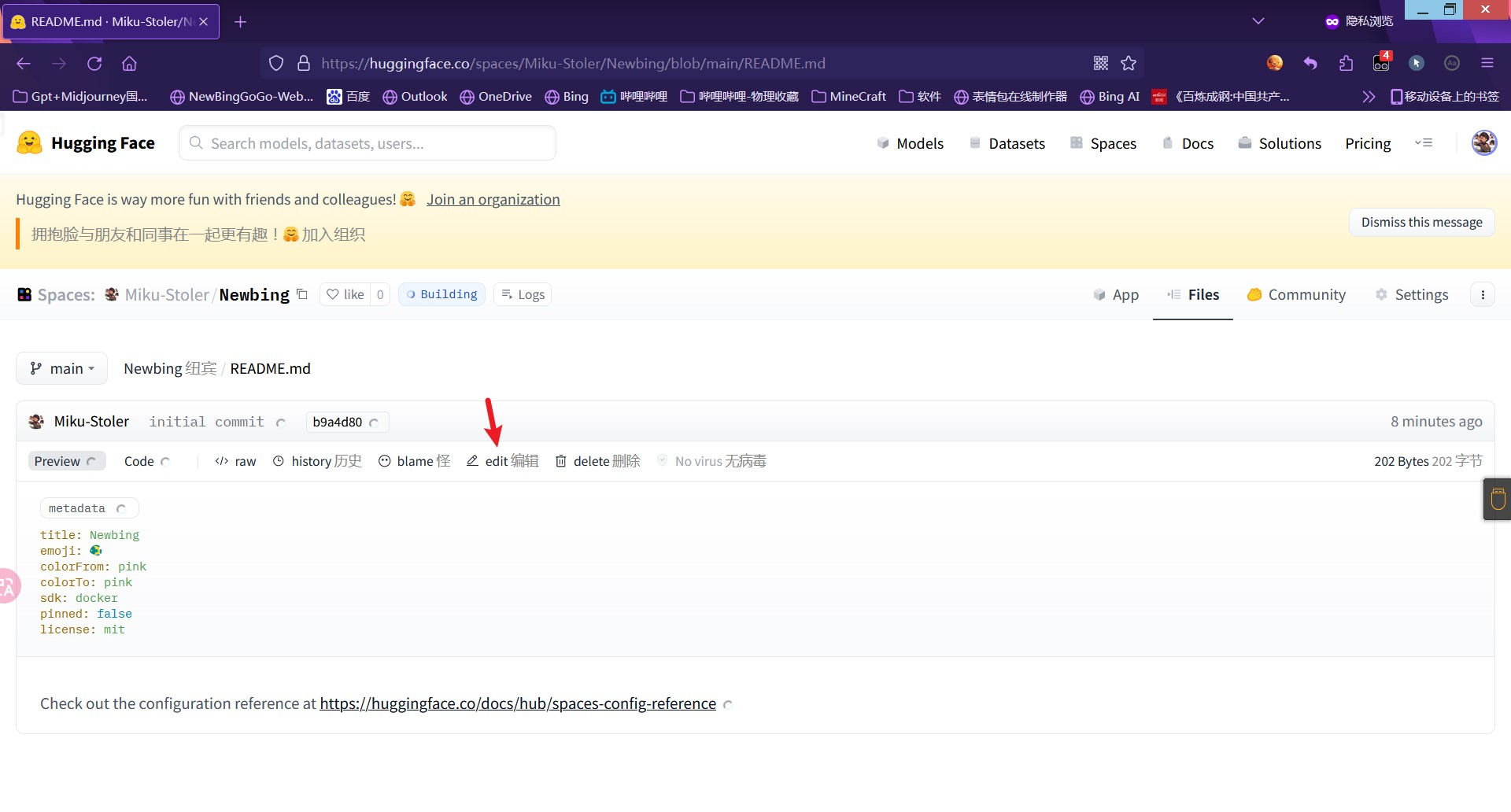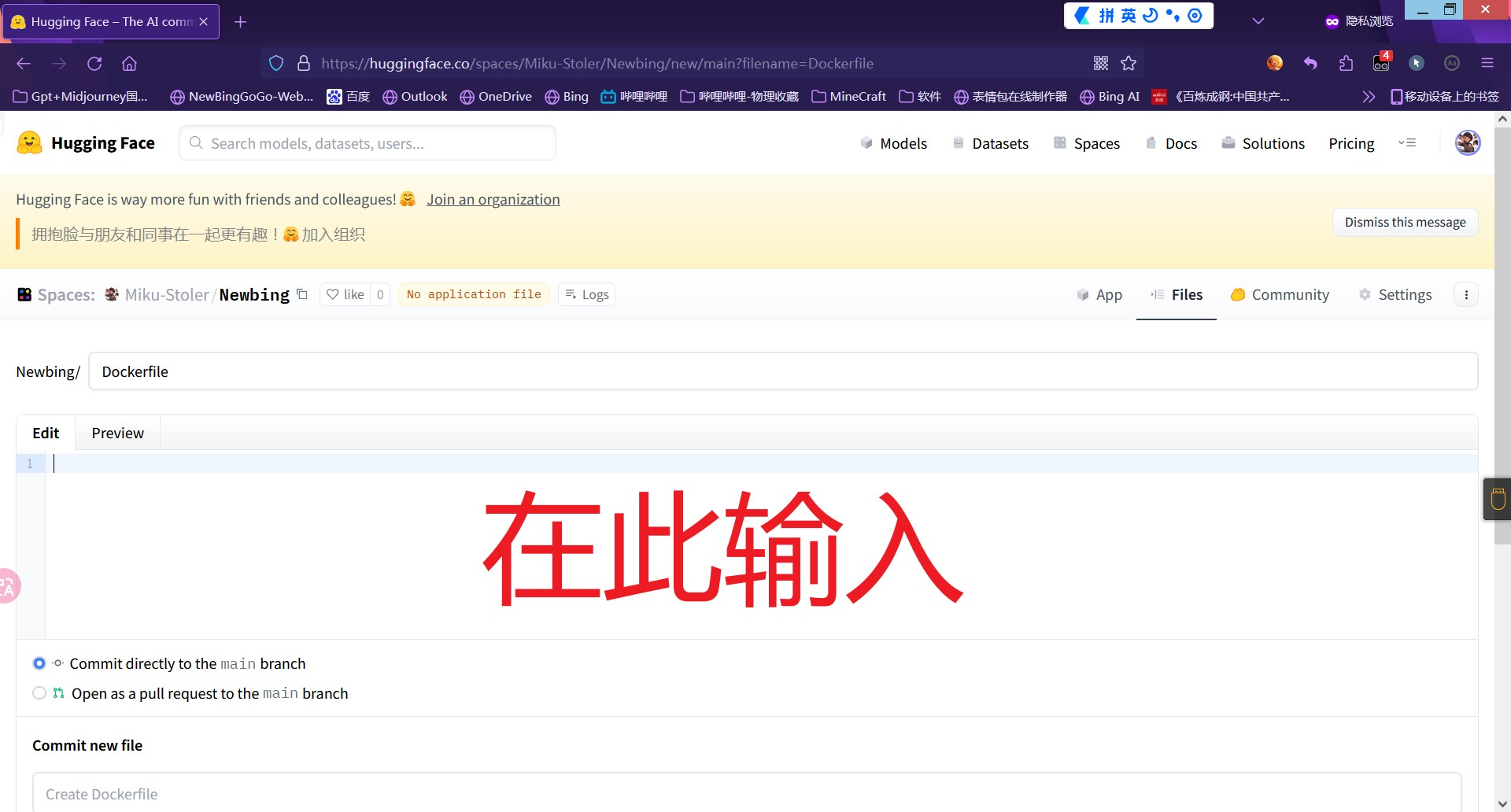 打开属于你的专属链接(https://你的名字-Space名称.hf.space)就是你在huggingface部署的New Bing应用了。