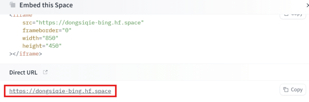 HuggingFace 不支持直接绑定自己的域名,但是可以通过 iframe 的方式嵌入自己的域名网站。我是通过子域名的方式绑定 HuggingFace 一键生成的 newbing iframe 应用