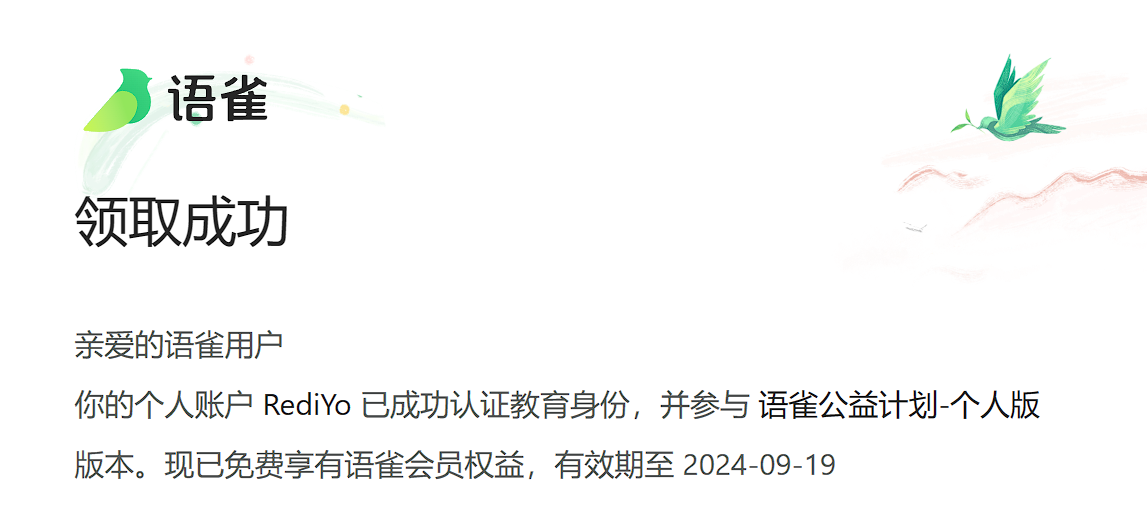 本人是语雀的忠实用户,虽然仍然存在卡顿情况但是确实功能丰富,今天也突然发现语雀开启了教育认证公益计划,每次利用教育邮箱认证可以免费获得一年的会员时常,爽歪歪!