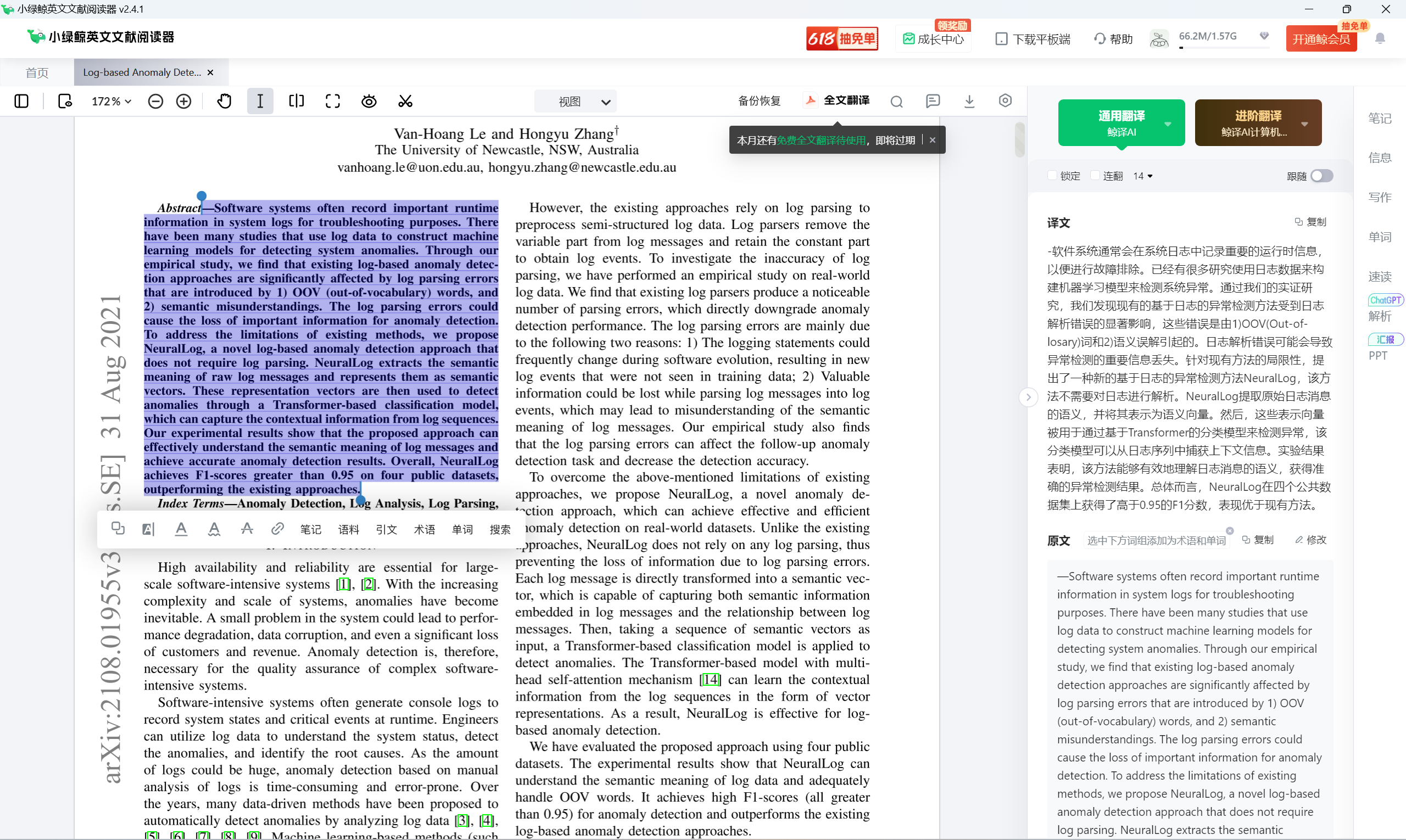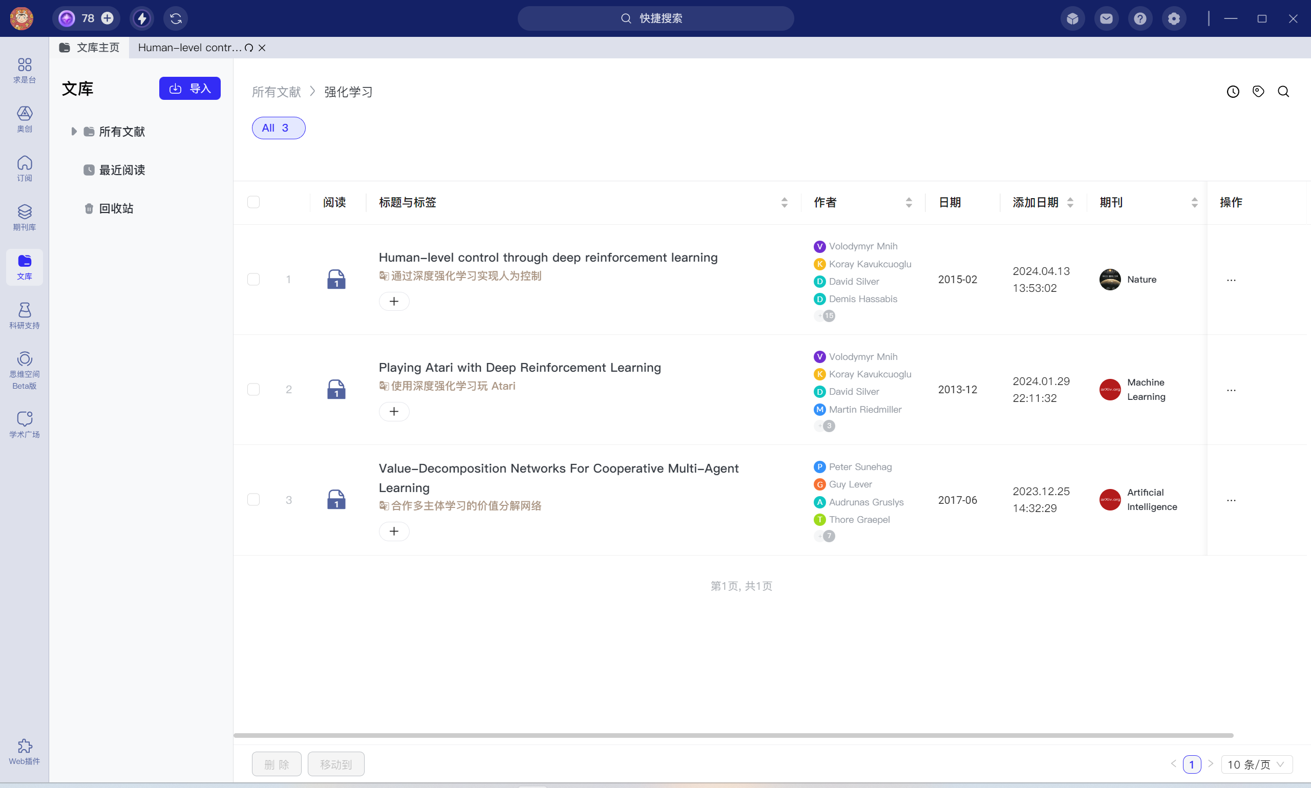 文献阅读工具 发表于 2024-06-27 分类于 工具技巧 Waline: 包含了我使用过的文献阅读工具,简要记录并推荐。 知云文献翻译纯粹的文献翻译阅读软件,有多种翻译API可以选择,百度翻译、谷歌翻译等。 小绿鲸包含文献阅读和文献管理功能,慢慢增加了很多功能,最近发展较好,用户也已经突破200万了。 催化剂加包含文献阅读和文献管理功能,最大的特色就是浏览器的展示方式,可以进行浏览器式的搜索文献并下载。